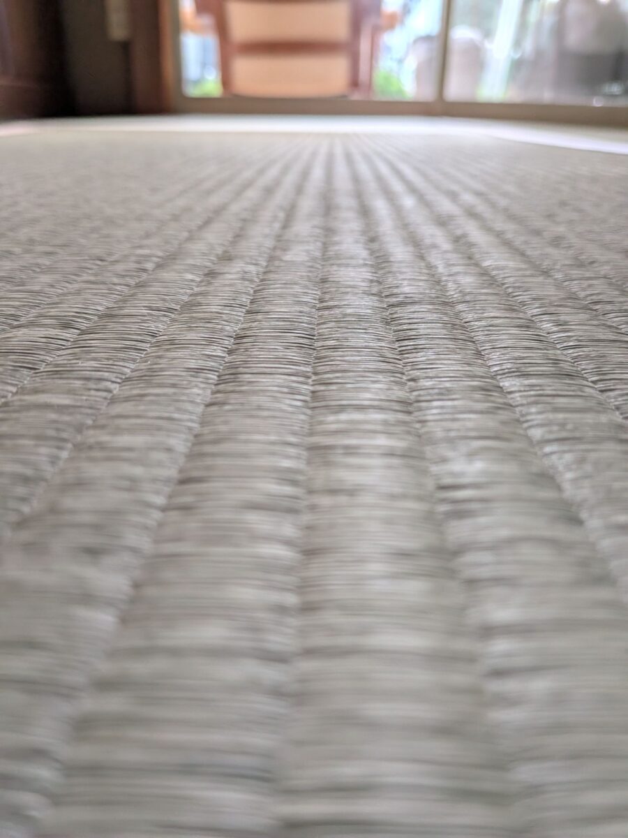 この畳表は「絞り目」という織り方が特徴で、谷(行)の部分を通常より細かく織り込んでいます。