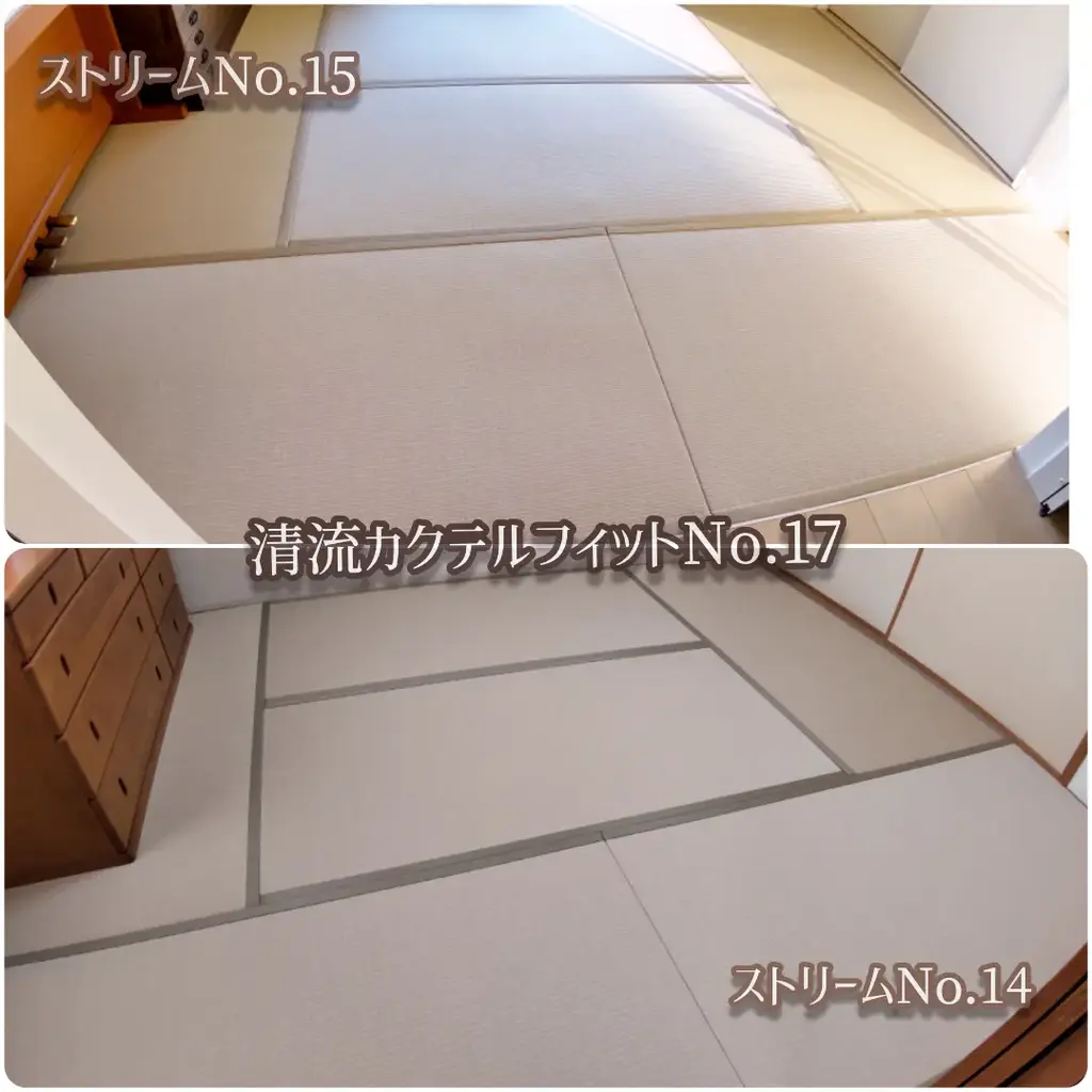畳表はDAIKEN和紙表「清流カクテルフィットNo.17」を、畳縁は大宮緣ストリームNo.15をお選び頂きました。