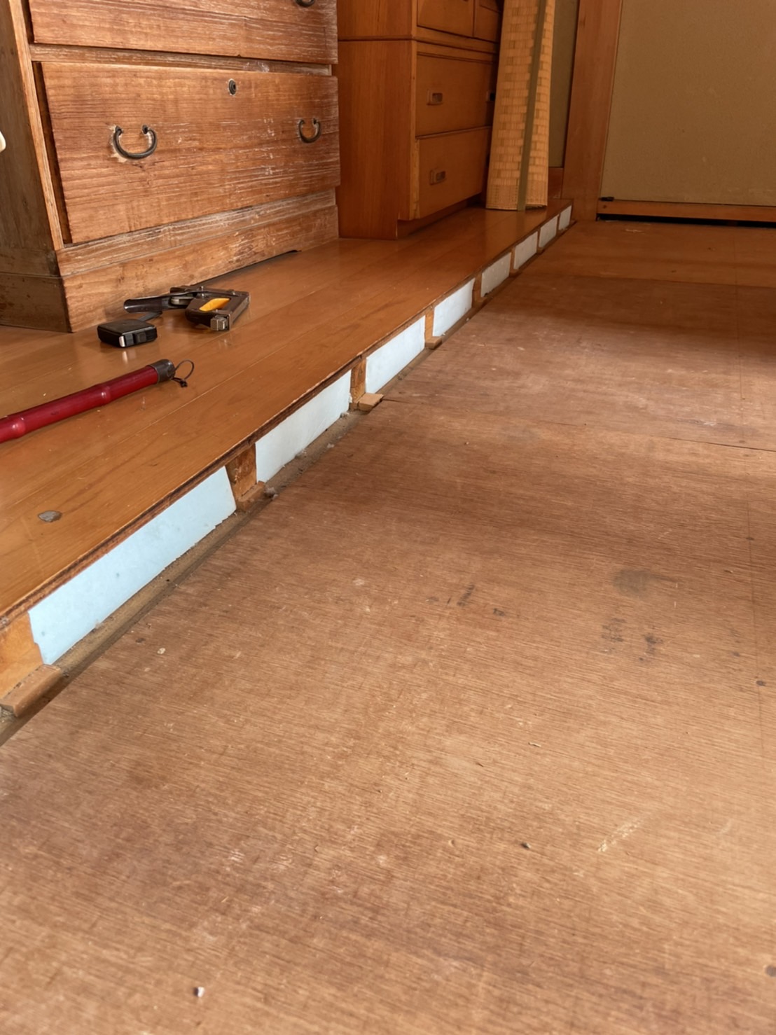 納める時、板間の下の隙間が気になるとの事なので、ウレタンフォームをカットして埋めました。
