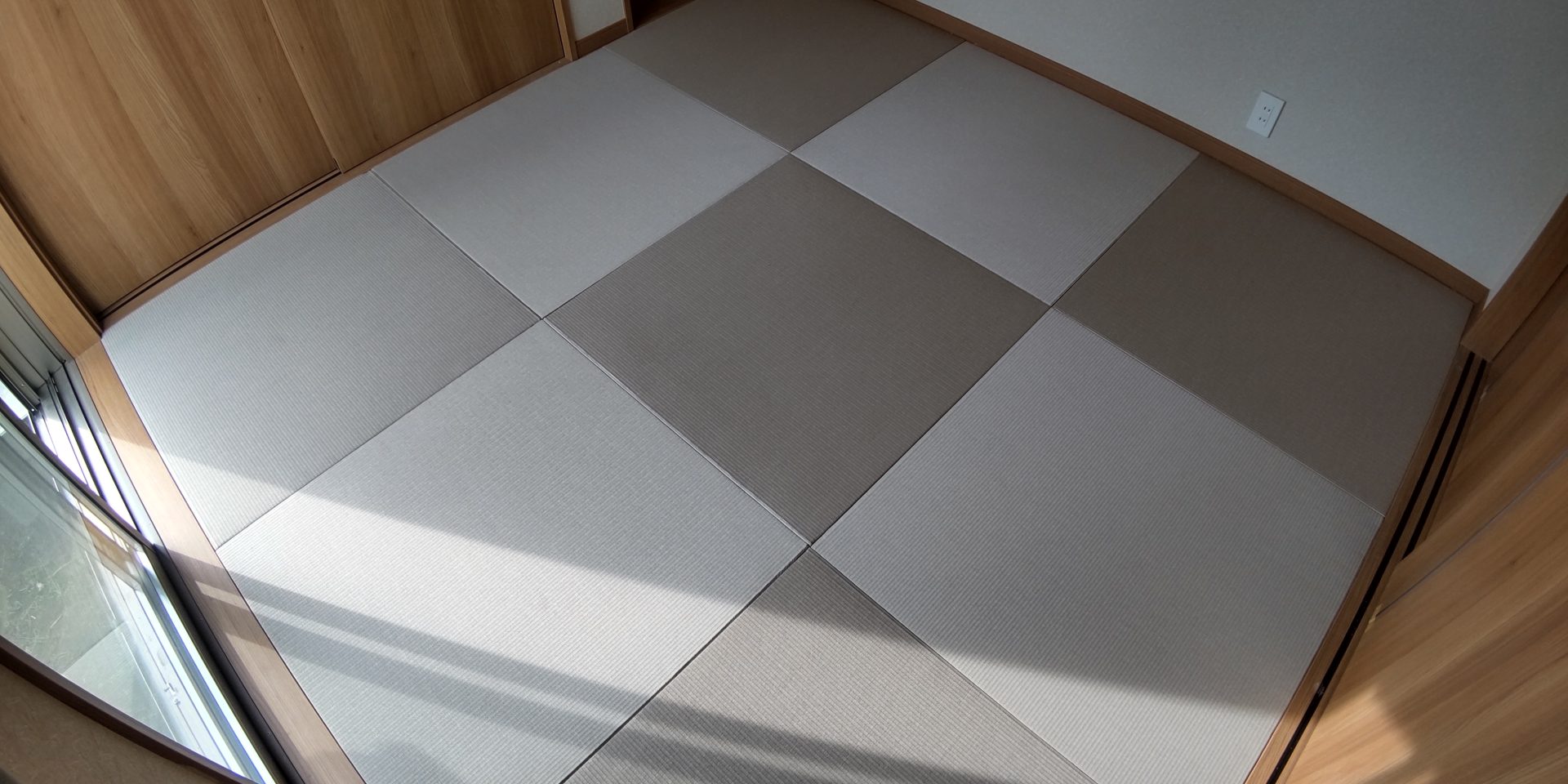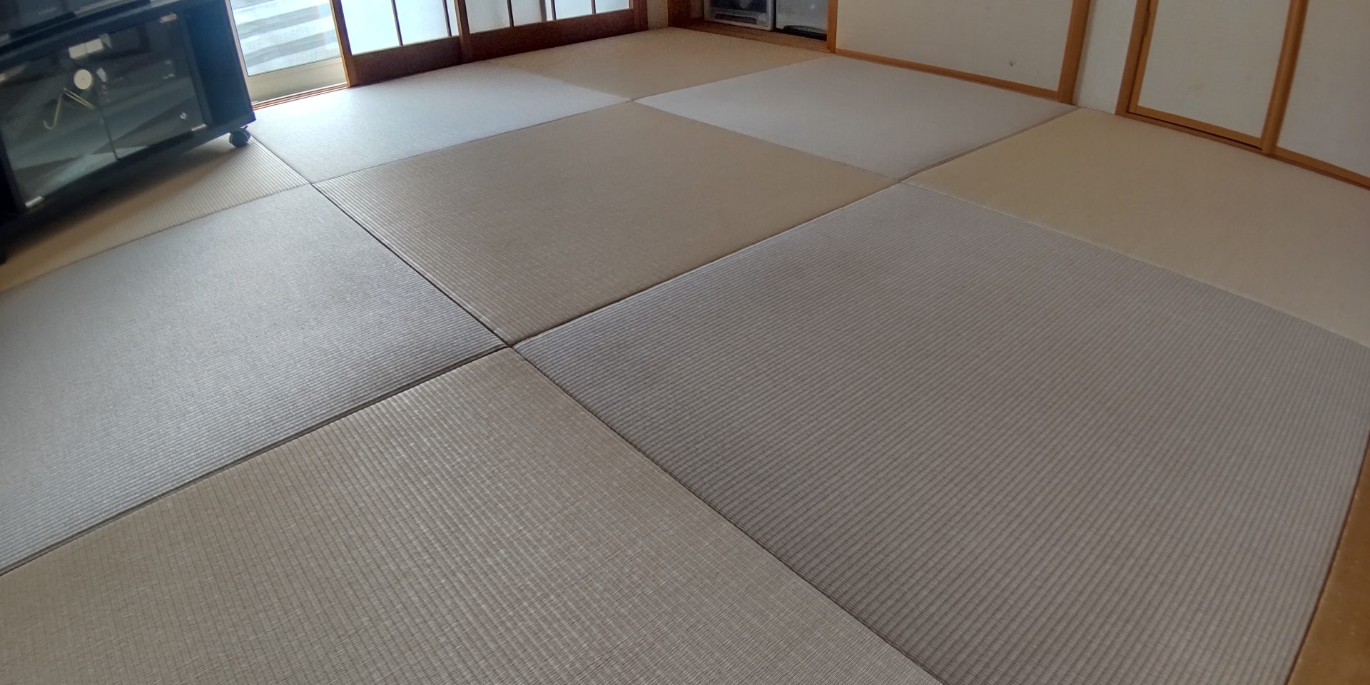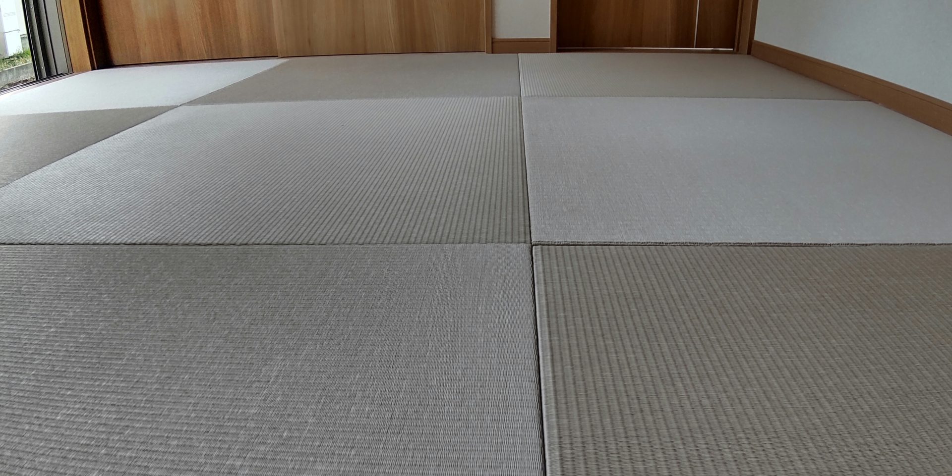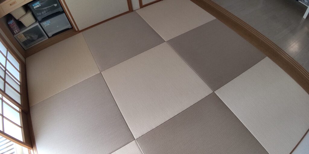 元々は藺草の目積表が付いてましたが、お子様達が活発なお年頃ということで、DAIKEN和紙表「清流カクテルフィットNo.15&No.17」の組み合わせをお選び頂きました。