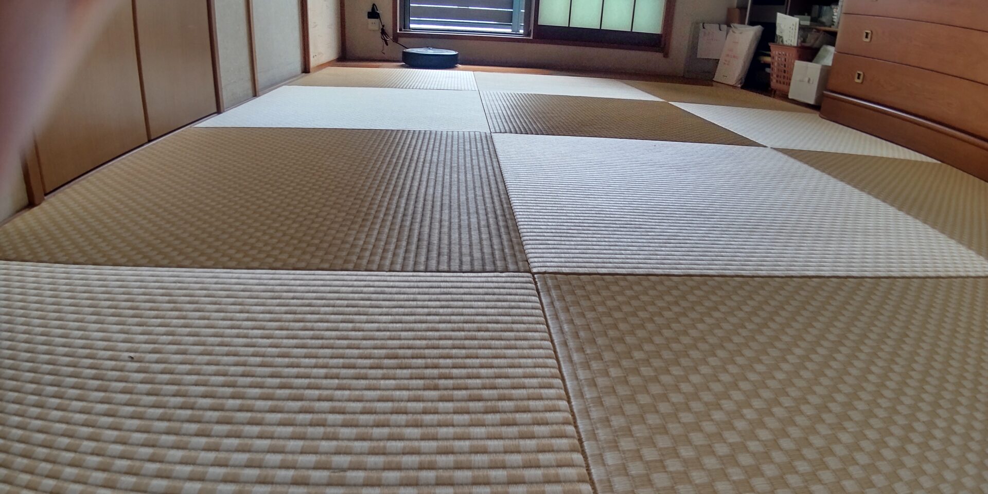 全く種類の違う二つの畳表を使用しているので、部屋の雰囲気がガラッと替わります。