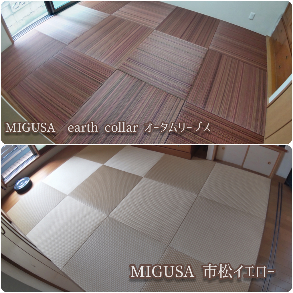 ○一階…SEKISUI MIGUSA「earth color オータムリーブス」を使用した半畳縁無し畳に。