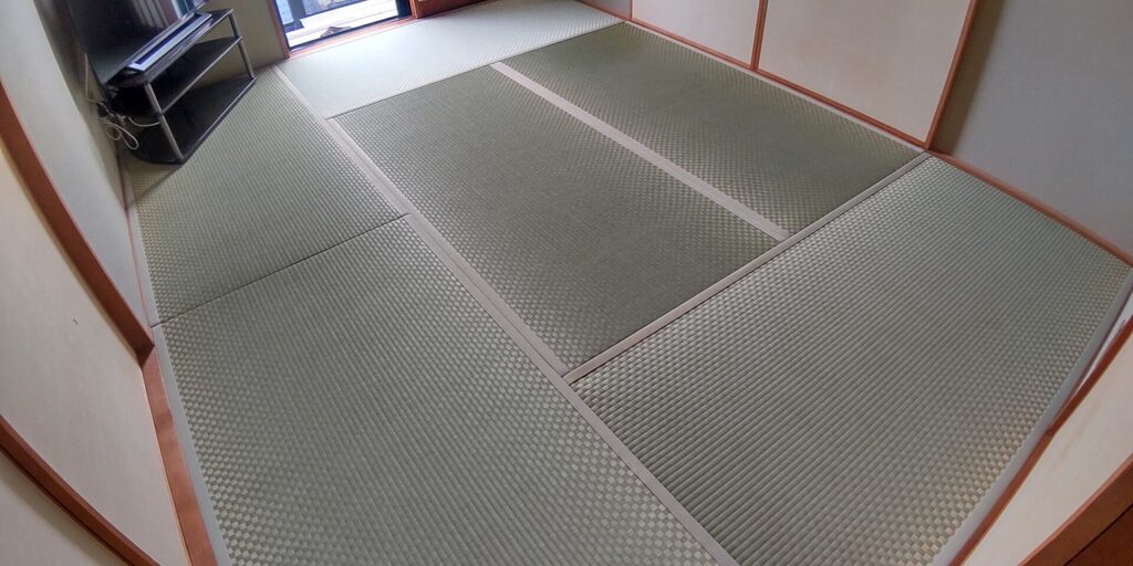 畳縁は、壁紙に合わすようにと「虞美人草・リーフグリーン」をお選び戴きました。