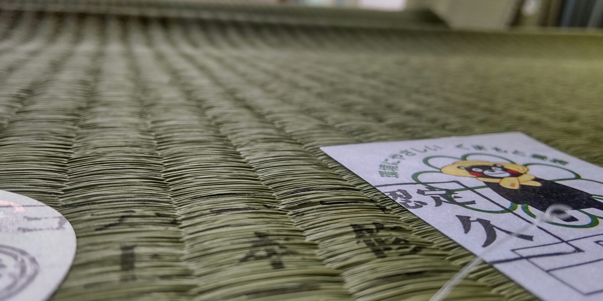 一方、「無染土畳表」は泥染めをしていない、「藺草」そのものを使用します。