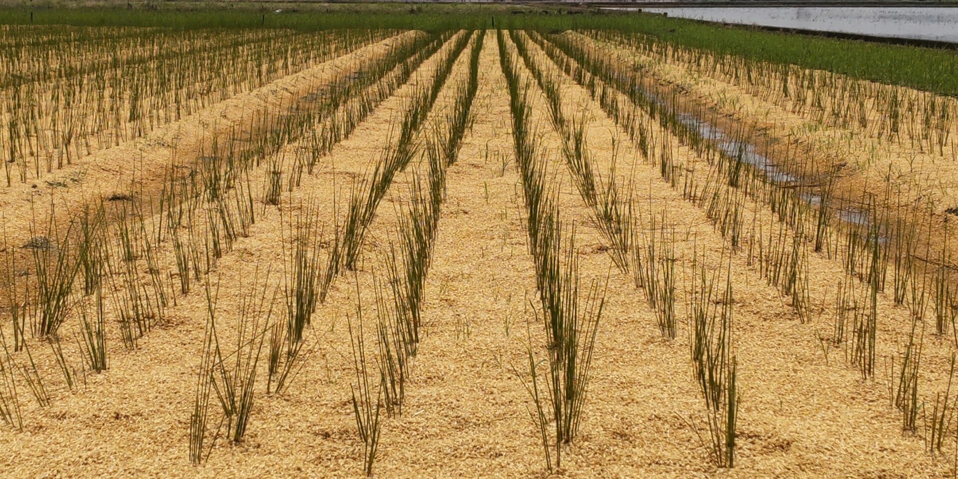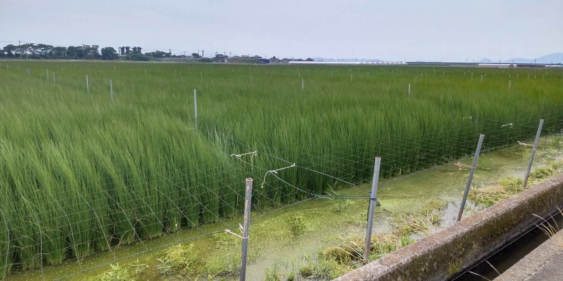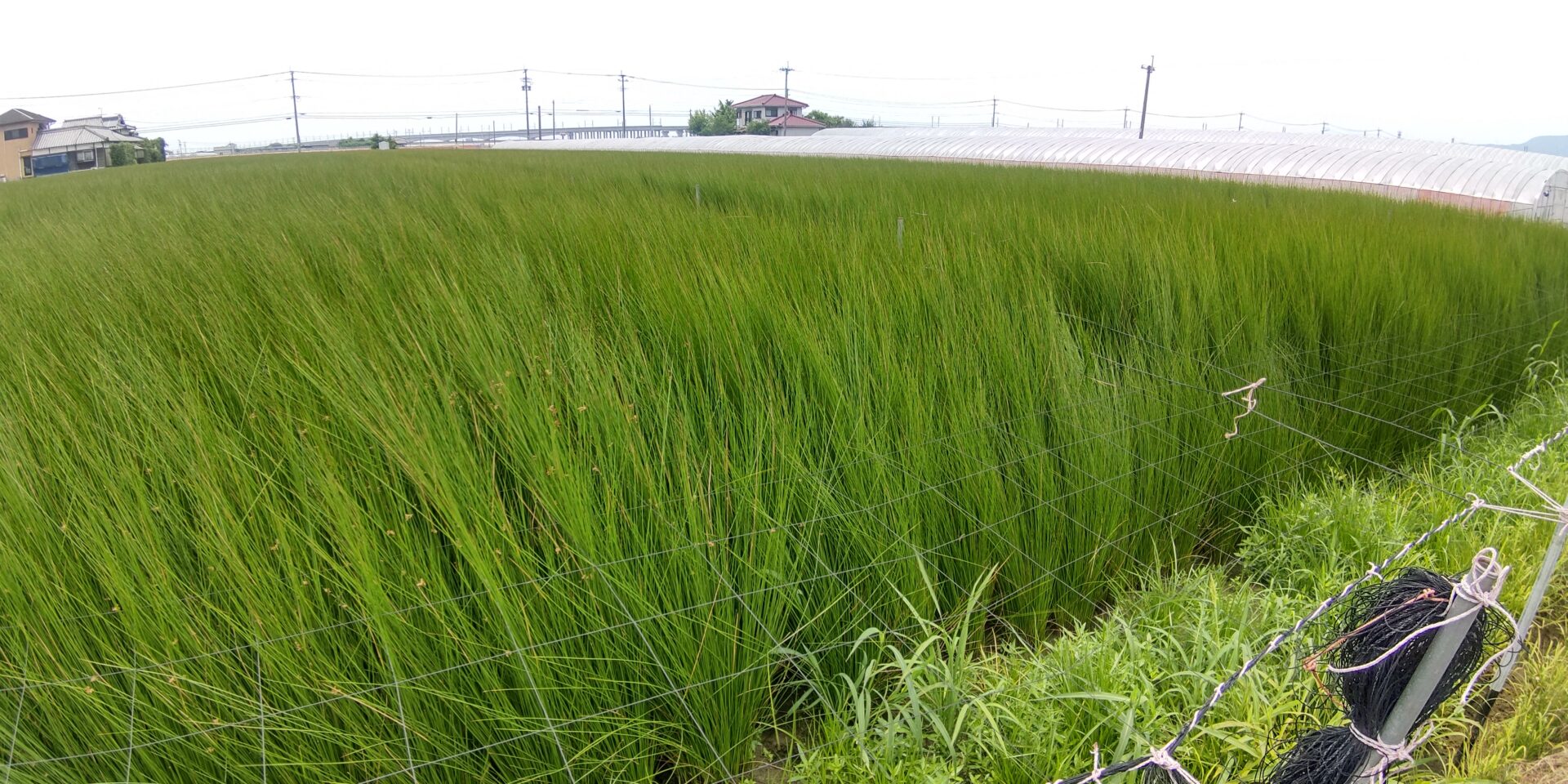 「今年は藺草が短い」と囁かれていたりしてますが、村上さんの田圃は綺麗な藺草がスクスク伸びていました。