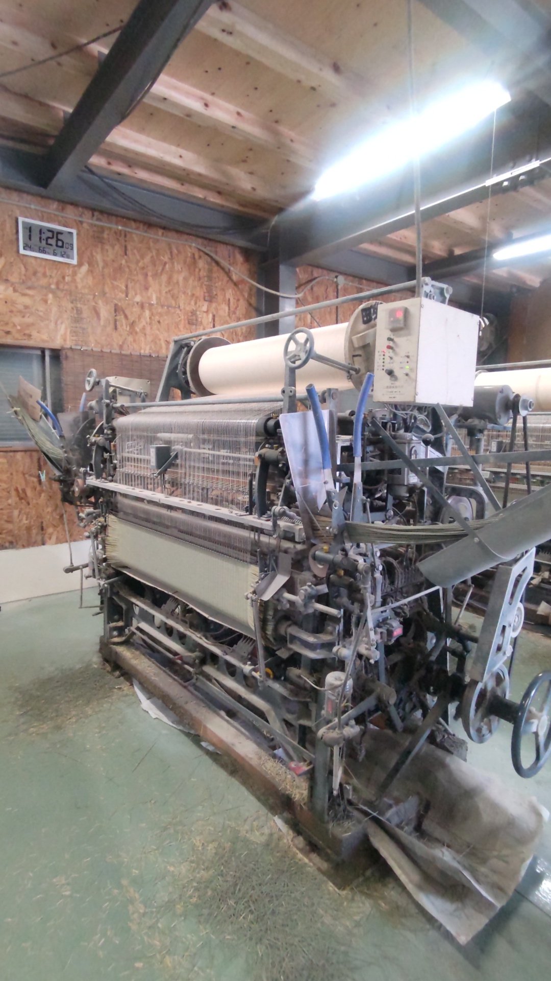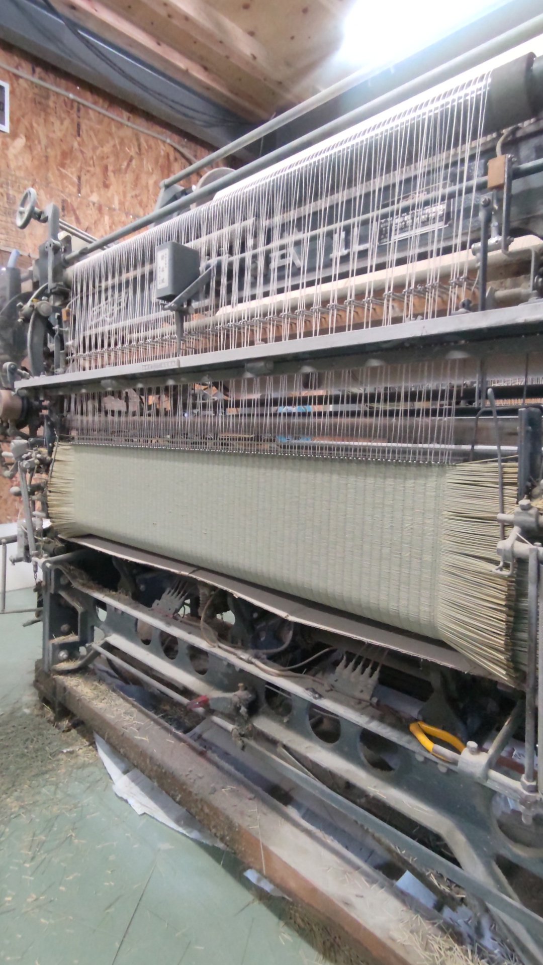 ギリギリまで畳表を織っていた畑野さん。工場の湿度管理等も行き渡っている中、織機から綺麗な畳表が出てきてました。