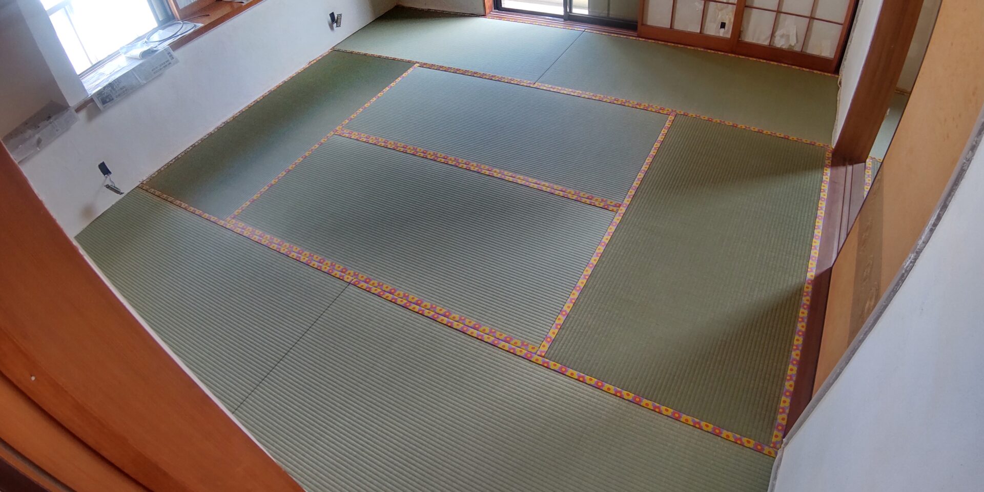 6畳間は畑野泰人さんの「武蔵」綿五本芯表と大宮縁・フルルNo.4の組み合わせの新畳をお選び頂きました。