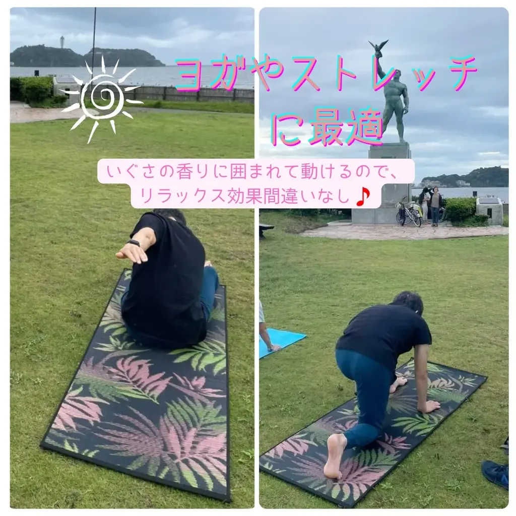 実際に片瀬海岸で開催している野外ピラティス(@maki_hira_35 )で使っていますが、適度なグリップやクッション性もあり、違和感なく使えています❇️