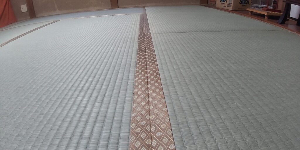 畳表は吉田一哉さんの「ひのみどり」麻綿W糸表を。畳縁は「白馬No.14」をお選び頂きました。