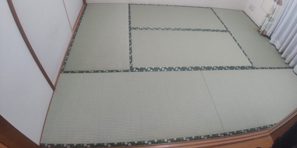 「子供が和室で暴れるから」と、既存で付いていたSEKISUI美草・引目グリーンをお選び戴きました。
