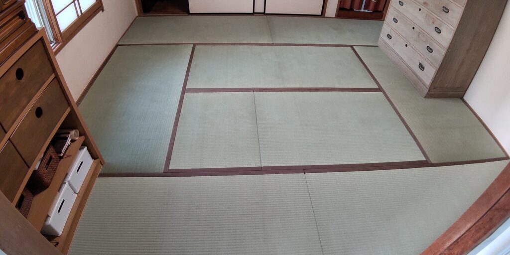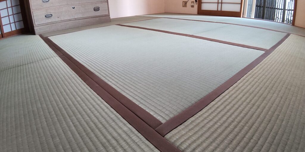 畳表は村上友教さんの「夕凪」麻綿W糸表(二番毛)を。畳縁は大宮緣・浮No.12をお選び頂きました。