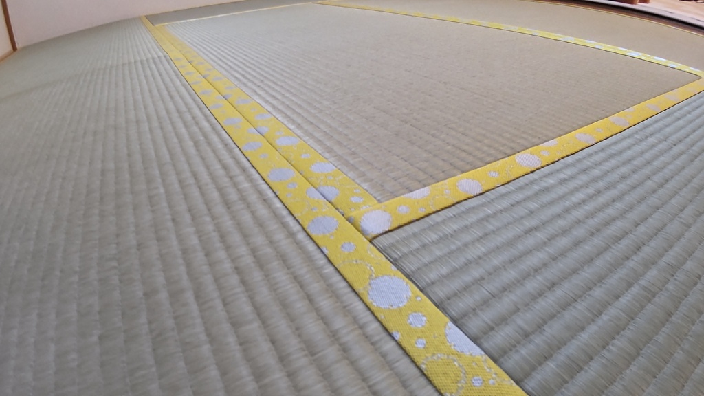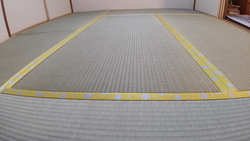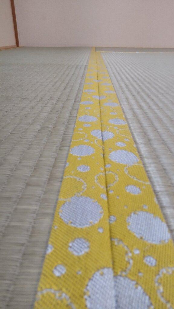 畳縁は、数ある見本から「うーん、どうしよう…」と悩まれた結果、「雪の輪・黄色」(お選び頂きました。